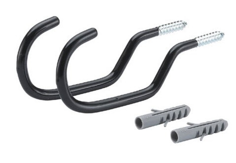 Два крюка с крепежом для хранения велосипеда. Специальное покрытие, защищающее велосипед от царапин. Материал: сталь.