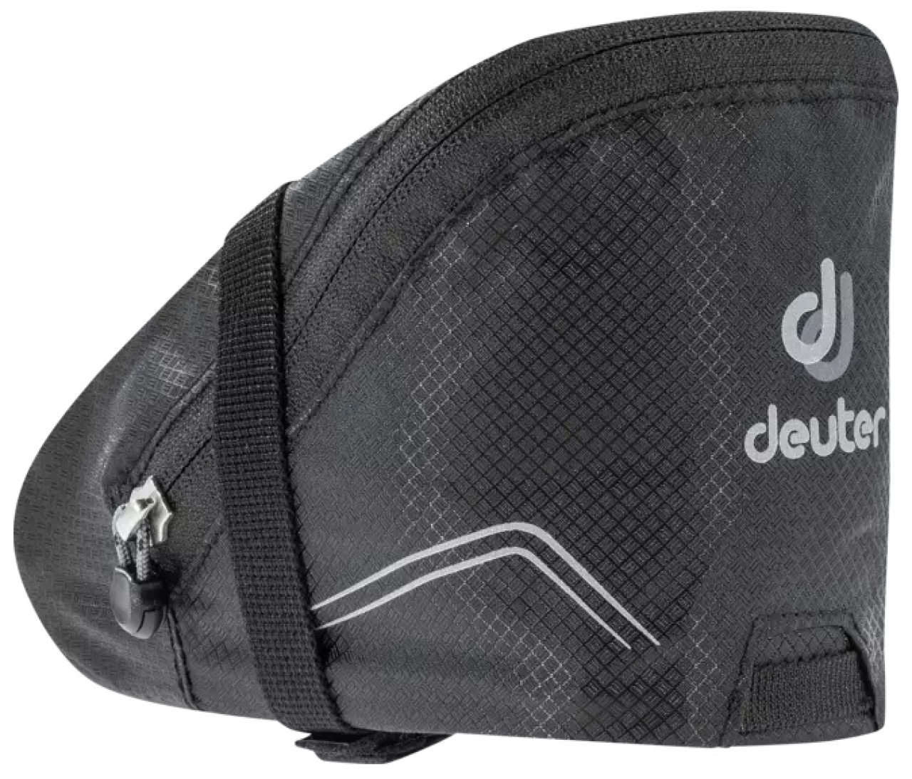 Сумка от немецкого производителя велоаксессуаров, компании Deuter. Она выполнена из водоотталкивающего, стойкого к износу материала на основе нейлона - Matrix RS 150D. Имеет одно основное отделение, которое закрывается на потайную молнию. Дно выполнено из упрочненного материала. В сумке легко разместить все необходимое в пути: запасную камеру, велоаптечку, несколько личных вещей или небольшой перекус. По корпусу сумки нанесены световозвращающие элементы 3М, для дополнительной безопасности на дороге в темное время суток. С тыльной стороны размещен ремень для крепления габаритного фонаря. Сумка крепится на подседельные салазки велосипеда, при помощи ремня на липучке.