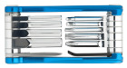 Мультитул Cube Cubetool 12 in 1 (40395) легкий, компактный и незаменимый инструмент во время велопоходов. Инструмент включает в себя 12 функций: 6 шестигранных бит на 2 мм, 2.5 мм, 3 мм, 4 мм, 5 мм, 6 мм, две биты типа Torx T25 и T10, крестовая и плоская отвертка, монтажка для шин и открывашка для бутылок. Мультитул весит всего 80 г.