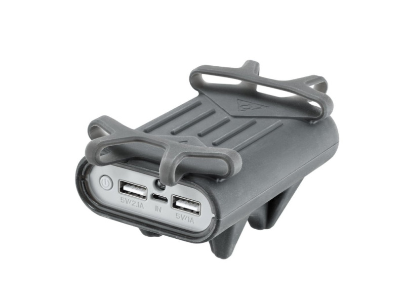 Держатель телефона с Powerbank Topeak Smartphone Holder станет отличным мобильным решением для длительных поездок. Он оборудован качественным силиконовым чехлом для телефона диагональю от 4.5" до 5,5", а также отдельным отсеком с интегрированным внешним аккумулятором емкостью 7800 Mah, способным заряжать сразу два устройства. Установка держателя на руль осуществляется с помощью ремня на замке-липучке. Также, в комплектацию входит органайзер с креплением для USB-кабеля к раме. Подходит для установки на руль диаметром 22,2 - 31,8 мм.