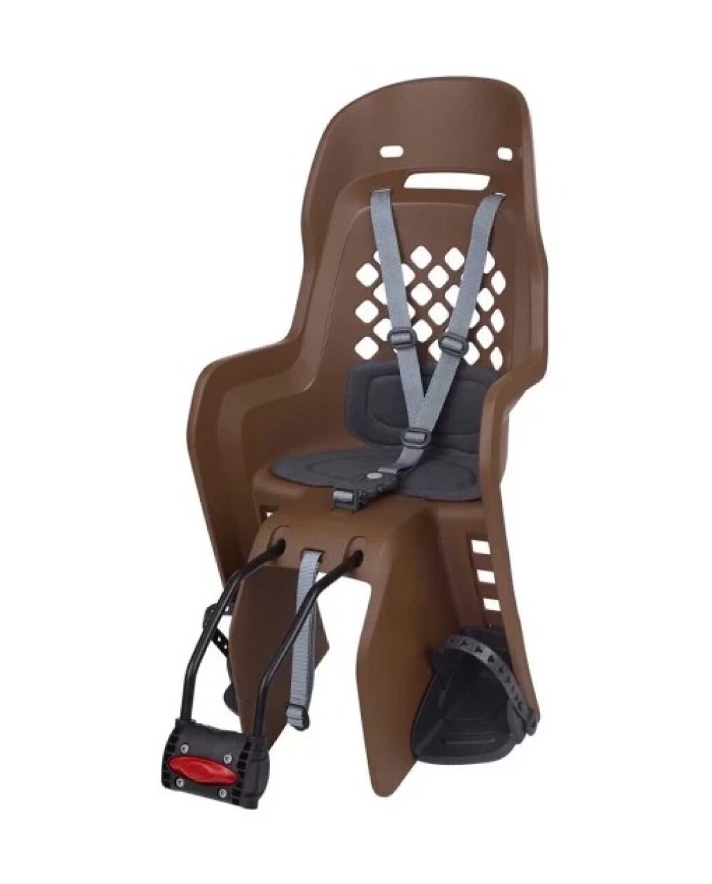 Joy FF - легкое в использовании детское кресло от Polisport. Корпус кресла выполнен из прочного пластика и покрыт специальным мягким матрасиком. Он обеспечивает мягкую посадку, отличную амортизацию, приятные тактильные свойства, легкую мойку и влагоустойчивость. Вес кресла 4,5 кг. Трехточечный ремень мягко и надежно фиксирует ребенка по всему корпусу тела, мягкие вставки ремней не натрут и не нарушат комфорт посадки, а пряжка защищена от самопроизвольного расстегивания ребенка в пути. Подножки легко поддаются регулировке в 4 положениях под рост ребенка, допуск от 9 месяцев до 5 лет и весом до 22 кг. Фиксатор установится на рулевой стакан рамы между верхней и нижней трубой рамы. Для безопасности движения советуем учесть к выбору шлем для ребенка, например MET Super Buddy. Кресло рассчитано на велосипеды с размером колес 26"-29" и совместимо с трубами размером 28–40 мм.