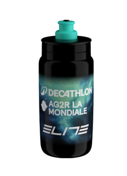 Фляга Elite Fly Decathlon AG2R 550 мл - очень легкая спортивная бутылка для воды, которая была сконструирована для велосипедистов мирового уровня. Она поставляется с универсальным диаметром и подходит под любой флягодержатель. Бутылка с большим отверстием для быстрой и легкой заправки и очистки. Пластмасса используемая для неё не содержит BPA и не имеет запаха. Довольно мягкая, чтобы "выжать" бутылку для быстрого использования, именно во время езды на велосипеде.