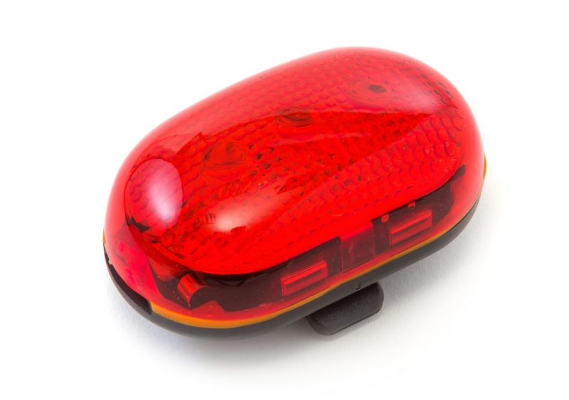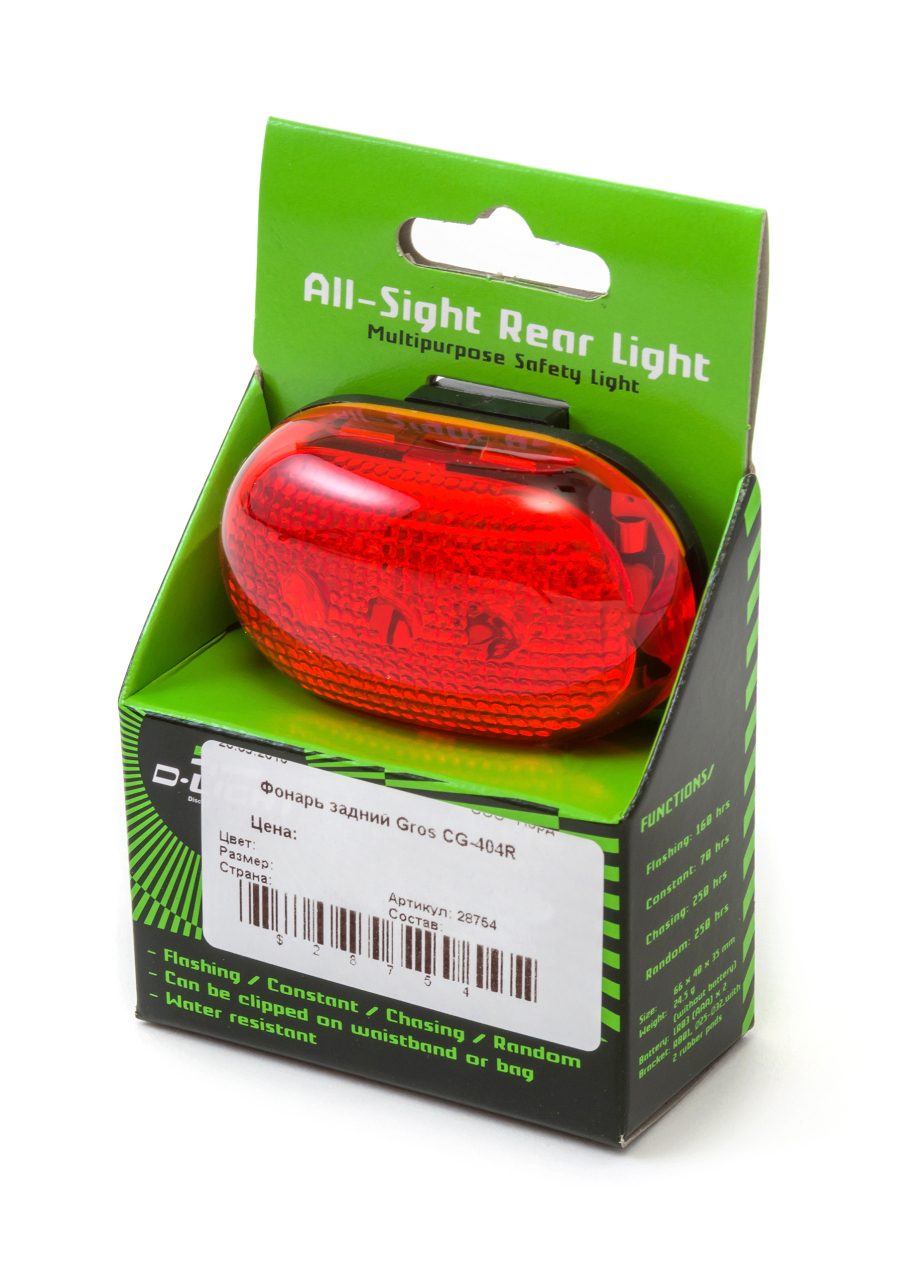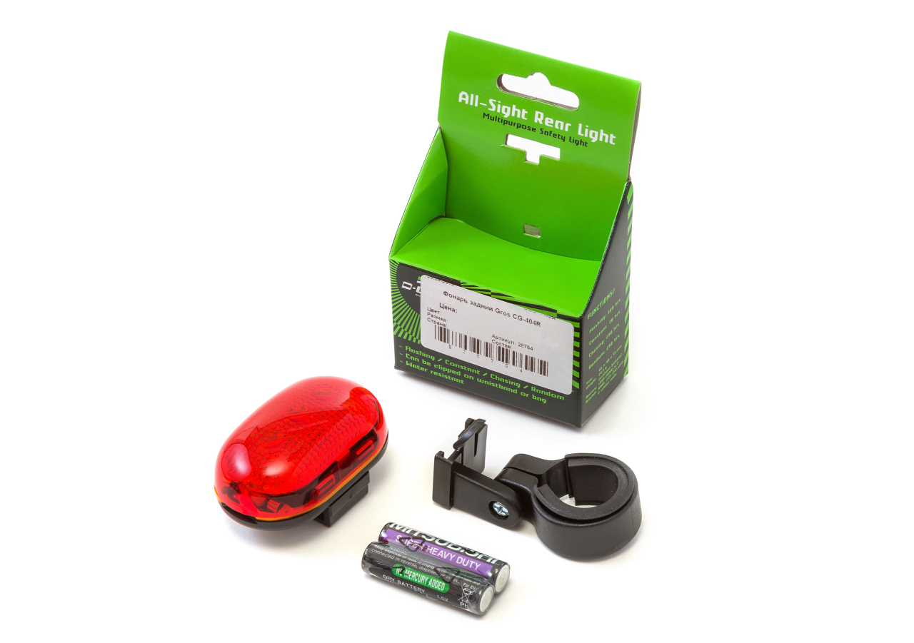 Фонарь с 5-тью яркими светодиодами, направленными в разные стороны, с углом видимости 180 градусов. 4 режима работы: постоянный и мигающий свет, «бегущие огни» и случайный режим. Работает от 2 батареек ААА. Корпус пластиковый. Надёжный и универсальный механизм крепления. Можно разместить на подседельном штыре, подседельной сумке, рюкзаке или ремне велосипедиста.