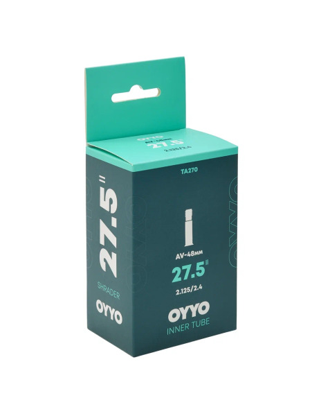 Бутиловая камера TА270 от производителя качественных компонентов OYYO, для горных, гибридных, городских, комфортных и дорожных велосипедов. Обладает размером под колеса 27.5" и диапазоном ширины от 2.125" до 2.40". Ниппель стандарта АV, имеет длину 48 мм, рассчитан для установки с высокими и низкими ободами под автомобильный ниппель (Schrader). Ниппель отлично удерживает давление, резиновый состав отлично тянется и тем самым сохраняет камеру в целостности. Камера рассчитана на посадочный размер 56/63-584".