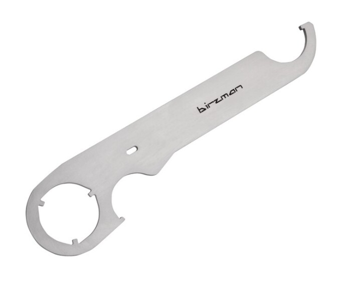 Ключ комбинированный Birzman Hook Wrench разработан для легкого и быстрого ремонта и обслуживания локрингов, стопорных колец и кареточных узлов. Выполнен из легированной стали (CrV), имеет достаточный рычаг для протяжки и удобную форму. Подходит как для домашнего использования, так и в промышленных целях в ремонтных мастерских. Трех шлицевой инструмент подходит для кареток 46 мм и для одинарных Г-образных хвата 46, 42.5 мм для стопорных колец. Длина инструмента составляет 300 мм.