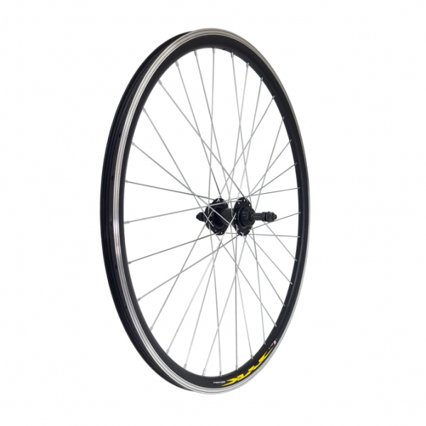 Колесо заднее в сборе, готовое к установке. Имеет стандартный размер 28". Подойдет для складных, горных, городских и прогулочных велосипедов. Рассчитано для установки с дисковыми тормозами с креплением ротора на 6 болтов, с трещотками на 6-8 скоростей и в рамы с шириной меду перьями 135 мм. (O.l.d). Втулка оснащена стальным корпусом с 32 отверстиями, насыпными подшипниками. Ось выполнена из стали, фиксируется эксцентриком. Спицы стандартные стальные 2 мм. Обод алюминиевый с двойной стенкой, с тормозной дорожкой, не пистонированный, также на 32 спицы. Оптимальным сочетанием будут покрышки с шириной от 1,75 до 2,25". Стоит заметить, что колесо полностью готово к установке, оно собрано и протянуто. В сборку не входят: ободная лента, камера, покрышка, трещотка.