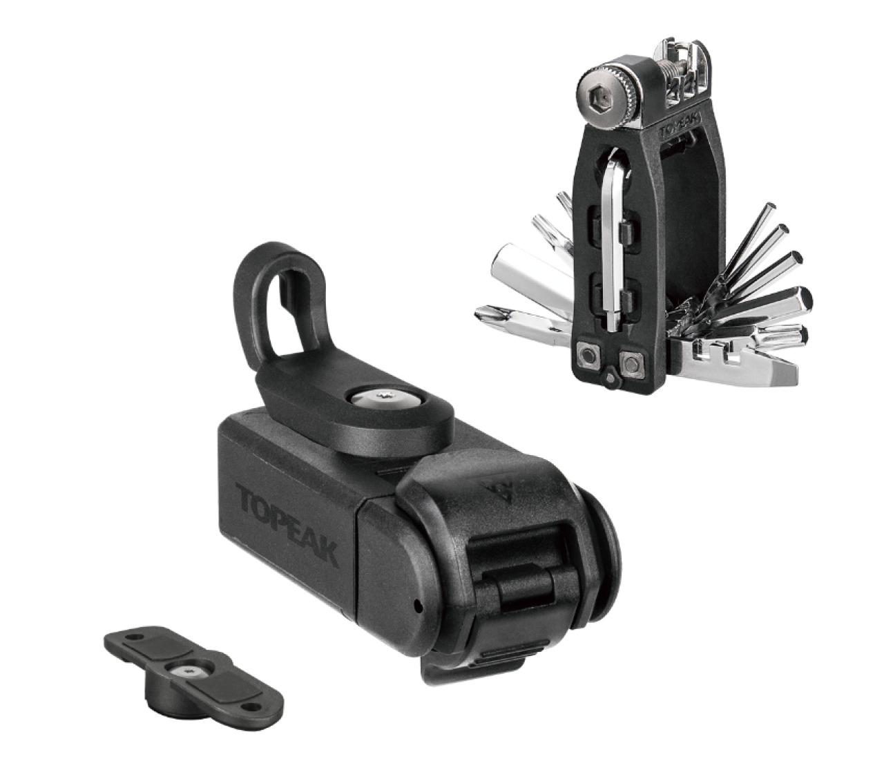 Topeak Ninja Master+ T16 - универсальный и удобный мультитул для оперативного ремонта велосипеда в дороге. Набор включает в себя 16 инструментов, включая шестигранные ключи с размерами от 2L до 8 мм, Torx-ключи размерами от T10 до T25, а также спицевые ключи стандартных размеров 14 и 15G, крестовую и шлицевую отвертку, выжимку цепи для 1-12 скоростных цепей, инструмент для работы с ниппелями, нож, и монтажки. Дополнительно мультитул комплектуется футляром Toolbox и креплением на раму Cage Mount, за счет чего этот набор инструментов удобно возить с собой.