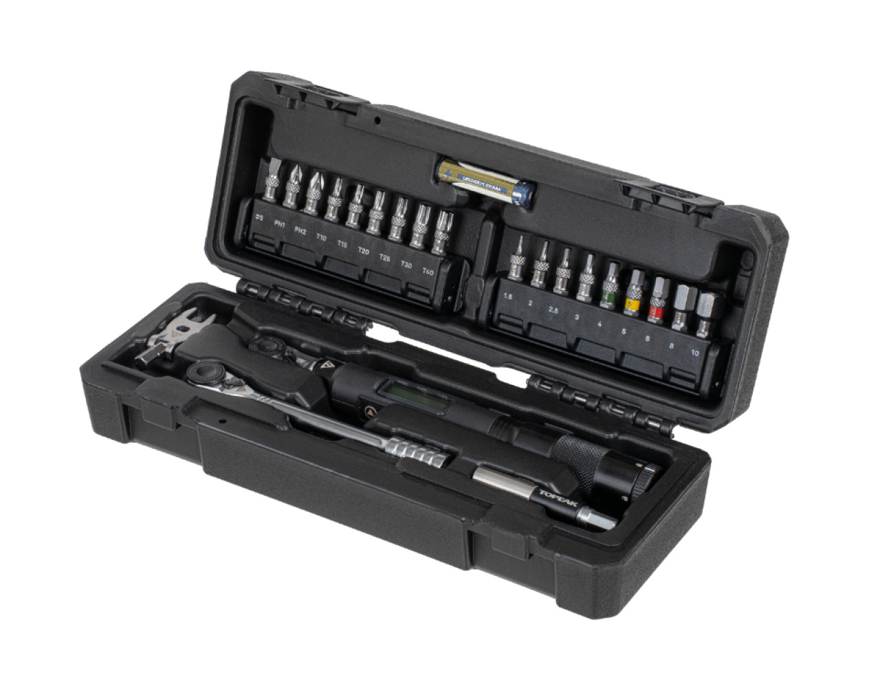 Набор инструментов Topeak Torq Stick Pro Digital - незаменимый помощник в любой мастерской. Этот комплект представляет собой полноценный кейс со всеми необходимыми инструментами, как для ремонта велосипеда, так и для любых бытовых целей, в который входит 22 инструмента, включая шестигранные биты с диапазоном от 1,5 до 10 мм, а также Torx-ключи с размером T10 до T40. Отличным дополнением комплектации стали крестовые и шлицевые отвертки а также динамометрическая трещотка с максимальным усилием до 60 Нм, которая оснащена цифровым дисплеем. В набор входит и эргономичный кейс, благодаря которому инструменты удобно транспортировать и хранить.