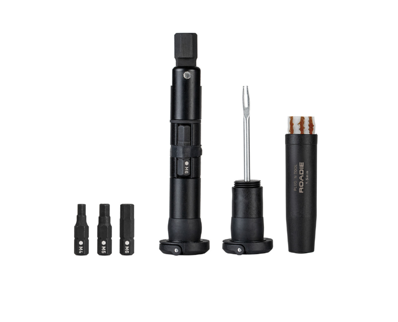 Набор инструментов в руль шоссейного велосипеда Topeak Plug'N Tool Roadie - лучший набор инструментов интегрируемый в руль вместо баренд (заглушек руля). Установка производится сразу с двух сторон интегрируемыми корпусами из стеклопластикового композита. В корпуса вмещаются: набор шестигранных ключей выполненных из закалённой стали 4, 5, 6, мм, шило 3,5 мм с жгутами для ремонта бескамерных покрышек. Корпусы совместимы с внутренним диаметром рулей 18 - 21 мм. Для быстрого доступа к отсекам с инструментами на торце имеется откидная ручка, которой удобно пользоваться даже в перчатках.