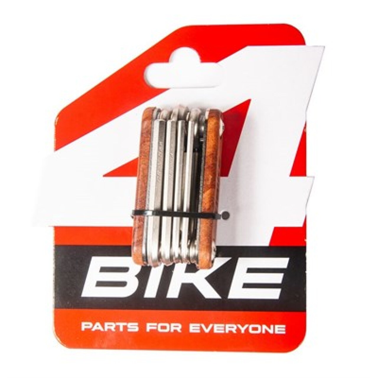 Набор шестигранников 4Bike BT-52K — многофункциональный инструмент 9 в 1, который удобно носить с собой. Благодаря своей компактности, мультитул без проблем войдет в карман, рюкзак или велосумку. Набор выполнен из Cr-Mo стали, известной своей долговечностью, а боковины выполнены из дерева, которое подарит высокий уровень комфорта в использовании.