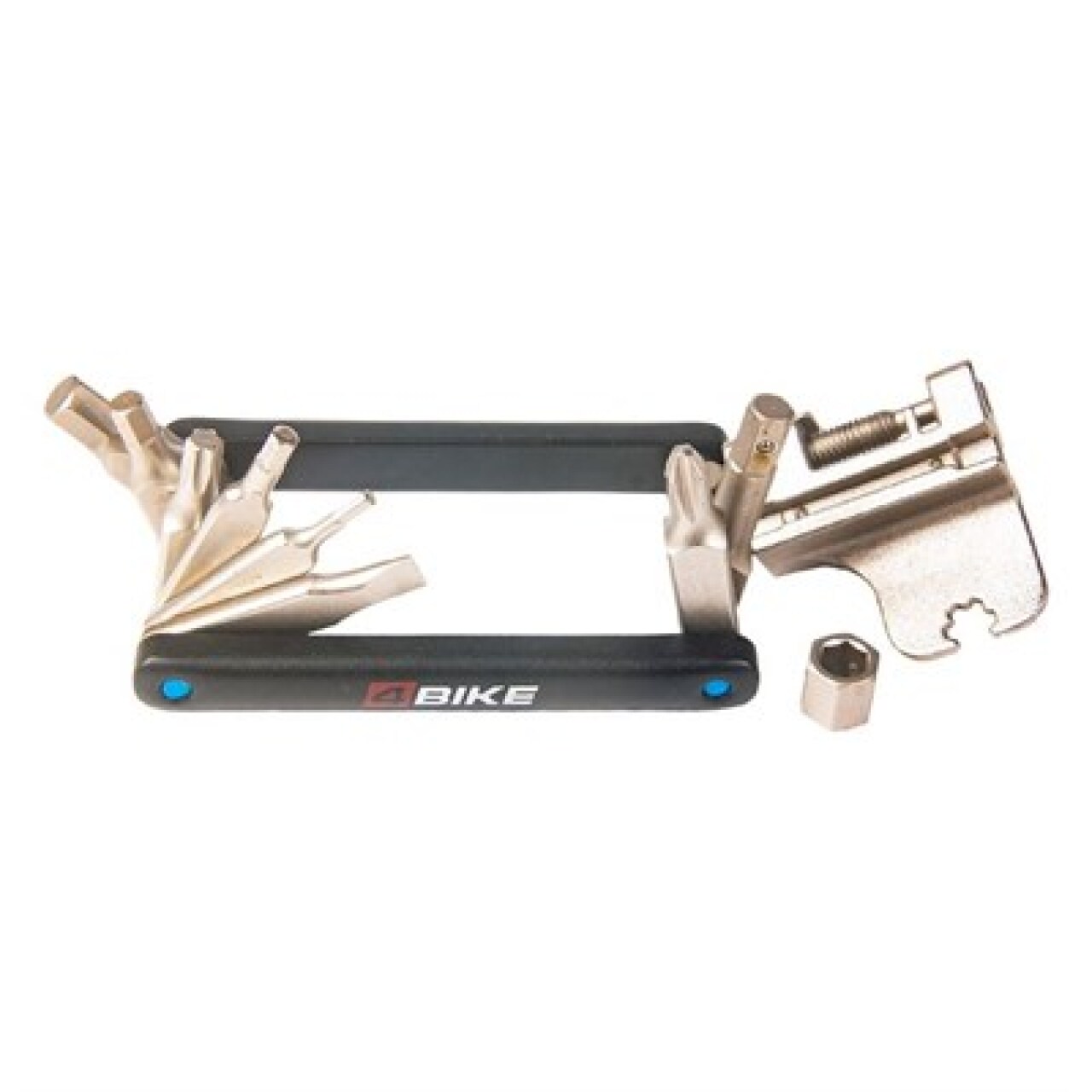 Набор шестигранников 4Bike FF-25 — пожалуй, самый многофункциональный мультитул - оставаясь компактным, он вмещает в себя 10 инструментов. Еще большей универсальности добавляет наличие спицевого ключа - еще одна потенциальная трудность на дороге устранена! При этом он все еще помещается в карман!