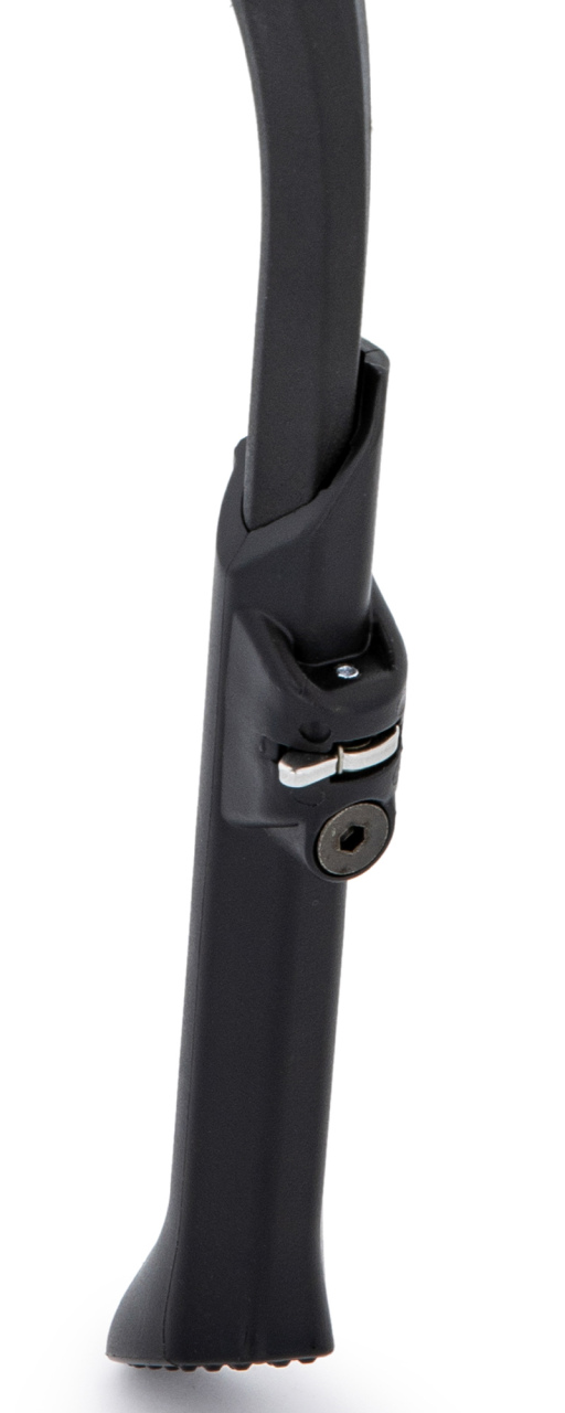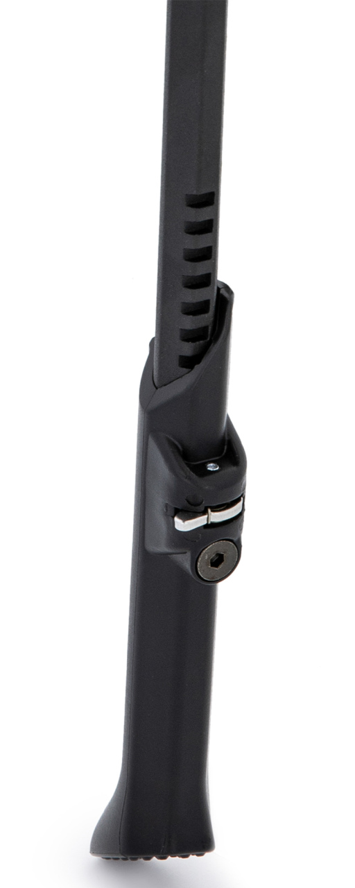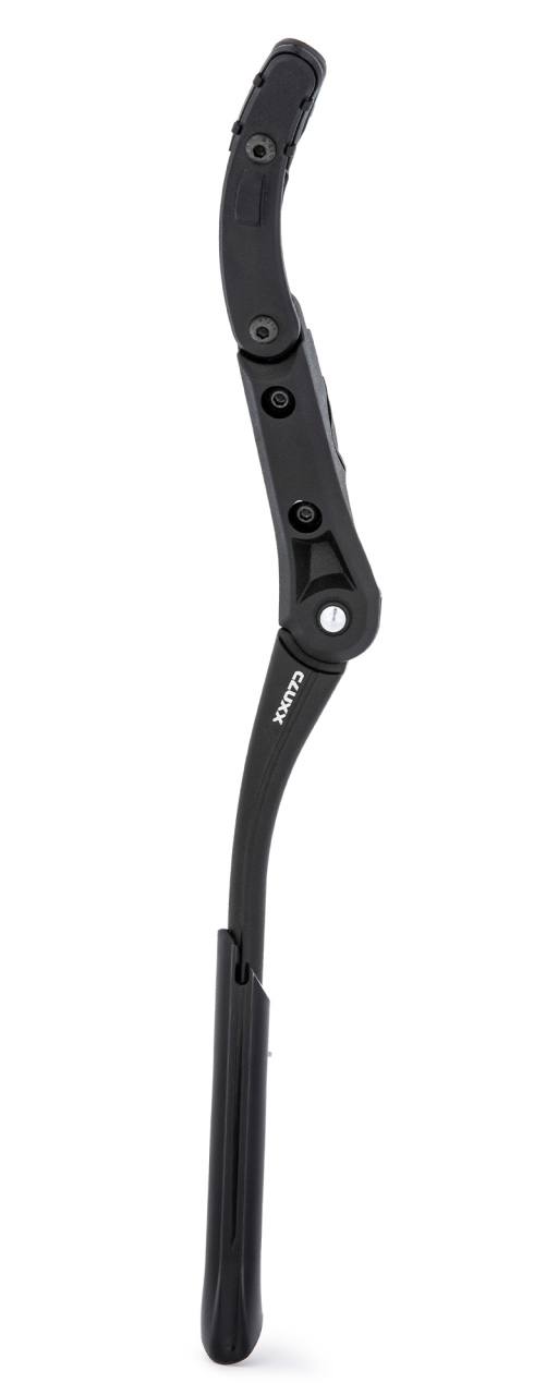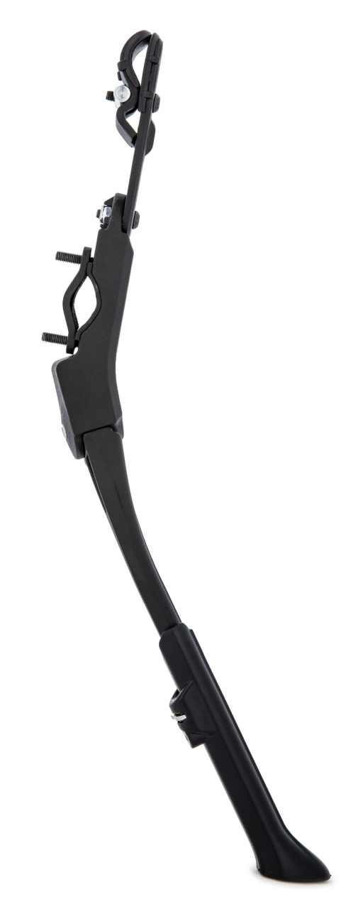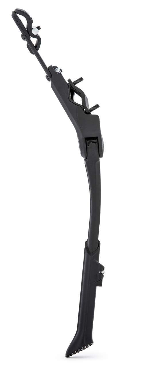 Телескопическая подножка Supra от от производителя Cluxx— это универсальное решение для всех типов велосипедов с диаметром колёс 26, 27,5, 28, 29 дюймов. Она крепится на два пера рамы с максимальным расстоянием между ними 160 мм и регулируется по длине без использования инструментов. Резиновые вставки на подножке предотвращают её прокручивание и повреждение лакокрасочного покрытия рамы. Подножка подходит для всех типов велосипедов с алюминиевой или стальной рамой. Также совместима с системами Post Mount. Подножка выполнена из алюминия , а опорная площадка — из ударопрочного пластика. Благодаря увеличенной площади опорной площадки, подножка обеспечивает устойчивость велосипеда даже на грунтовых дорогах. Упругая пружина позволяет легко складывать и раскладывать подножку, а также снижает шум при активном катании по неровной поверхности.
