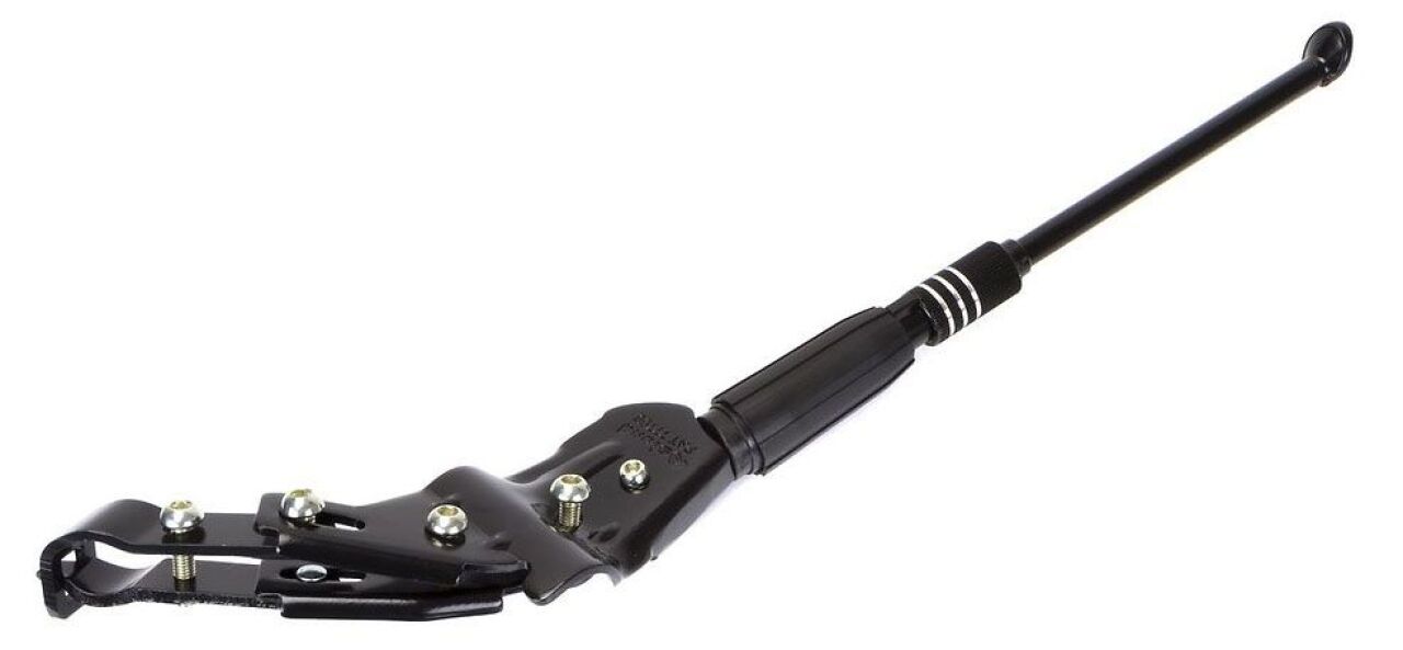 Боковая подножка выполнена из алюминия, телескопическая - имеет регулировку по длине при помощи резьбовой штанги. Регулируется вращением, без использования инструментов. Подходит для установки на велосипеды с диаметром колёс 26,27.5 и 28" (дюймов).Также её можно установить на велосипед , с диаметром колес 29", учитывая, что в опорном положении при стоянке, велосипед будет наклонен немного больше. Подножка фиксируется на 2 пера заднего треугольника рамы. Оснащена регулировкой верхнего фиксатора под разный угол перьев рамы. Подножка хорошо сочетается с круглыми и овальными перьями рам. Для комфортной установки подножки при наличии дискового тормоза, нужно обратить внимание на его крепление, оно должно располагаться на верхнем пере (стандарт IS ). Если дисковый тормоз закреплен внутри перьев - установить данную подножку не получится. Подножка выполнена в лаконичном черном цвете и хорошо сочетается с любой расцветкой велосипеда, а также избавит Вас от потребности искать место для постановки велосипеда на парковку.