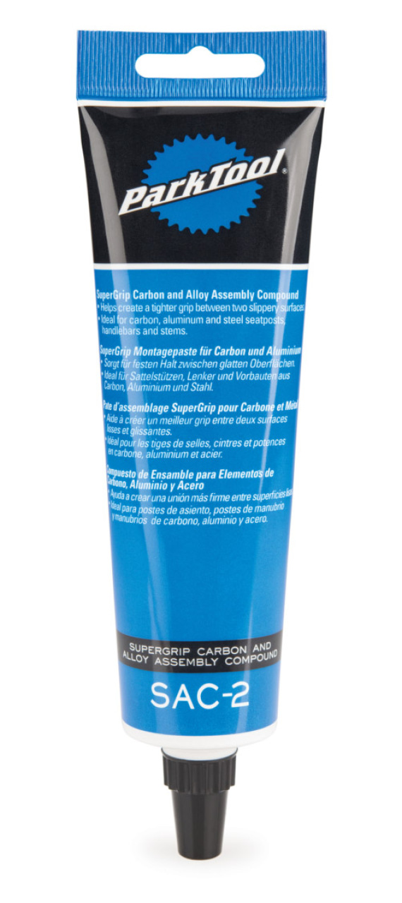 Сборочный компаунд ParkTool SAC-2 SuperGrip, тюбик 118 мл. Для работы с карбоновыми и алюминиевыми деталями. Помогает создать более плотное сцепление между двумя скользкими деталями велосипеда, например рама и подседельный штырь, руль и вынос руля.