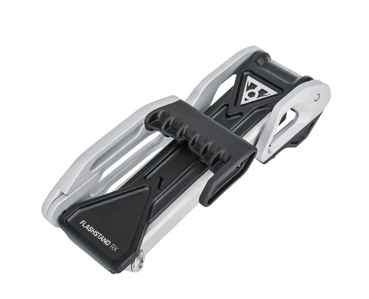 Стойка для настройки и хранения шоссейного велосипеда Flashstand RX от именитого производителя топовых аксессуаров и инструментов Topeak. Стойка выполнена из алюминиевого сплава с матовым покрытием и представляет собой компактную конструкцию с подставкой под кареточный узел и фиксатором за нижнюю часть рамы. Компактная конструкция быстро собирается в компактные размеры удобные для хранения. Максимальная нагрузка составляет до 11-ти кг.
