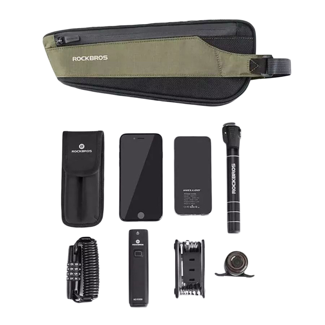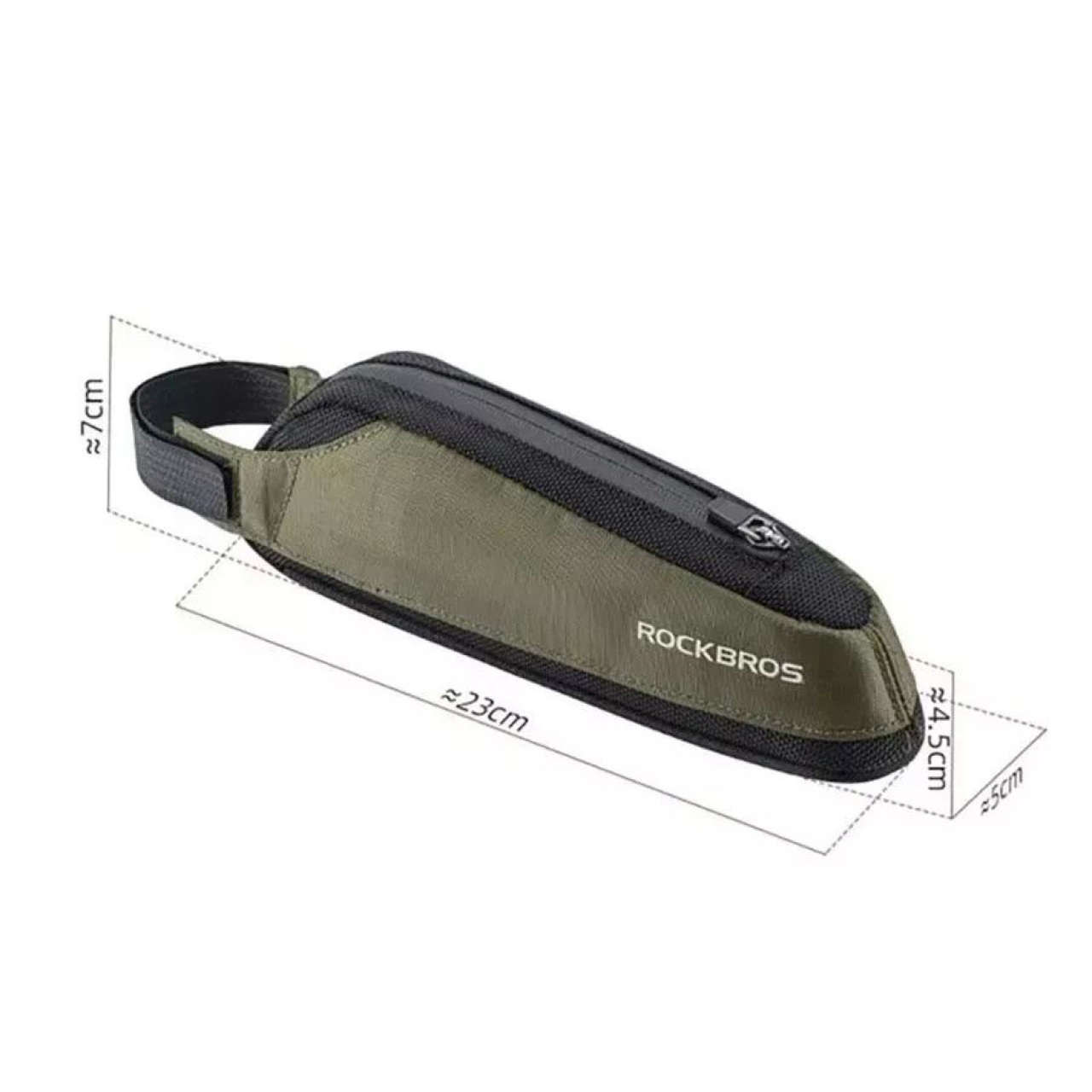 Сумка на раму 30120080002 от производителя Rockbros освободит вас от необходимости возить с собой поясную сумку и куда-то размещать вещи чтобы они не мешались в дороге. Данная сумка крепится на раму или под нее и выполнена из водонепроницаемого нейлонового материала, благодаря которому все вещи сохранятся в сухости и чистоте. Установка происходит за счёт трех широких стреп на крепкой липучке за верхнюю трубу рамы и вокруг подседельной трубы, или рулевой колонки. Подойдет для любого направления велосипедов, включая шоссейные дисциплины. Объем сумки в 0,65 л позволяет разместить в себе все необходимые предметы. Выпускается данная сумка в красивом и практичном цвете хаки.