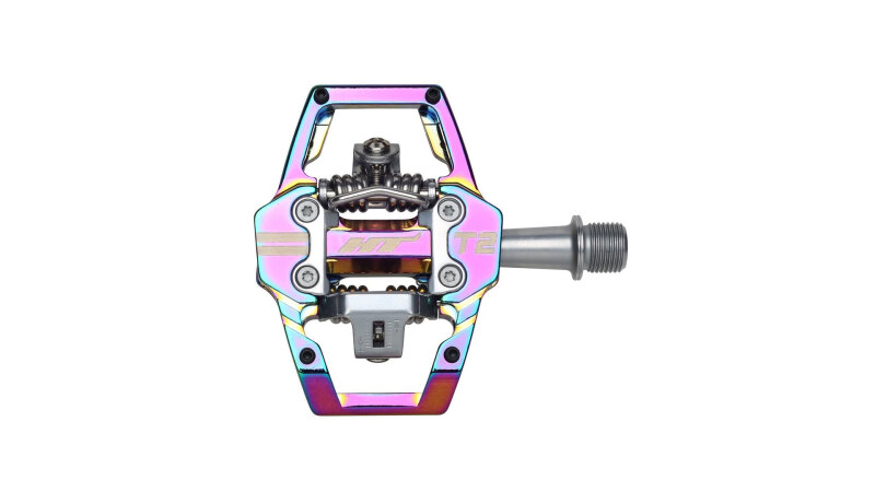 HT T2 - удобное, надежное и легкое решение для контактной обуви, тренировок и гонок в направлениях Enduro и Trail. Корпус выполнен из алюминия с применением ЧПУ обработки. Собрана с использованием втулки скольжения IGUS с герметичными промышленными подшипниками, что дает высокую плавность вращения и устойчивость к пыли, влаге и грязи. Корпус фиксируется на Cr-Mo ось, выполненную с CNC обработкой и имеющую стандартную резьбу 9/16". Система фиксации имеет оптимальный диапазон настройки пружины и располагает к использованию с MTB шипами, оптимальным сочетанием будут фирменные шипы серий X1E, X1 и X1F. Несовместимы со стандартом SPD от Shimano. Характеристики не уступают материалам - вес пары 376 грамм, размер корпуса 68 x 84 x 17 мм. Педали не комплектуются шипами и в продажу поступают в цвете Oil Slick.