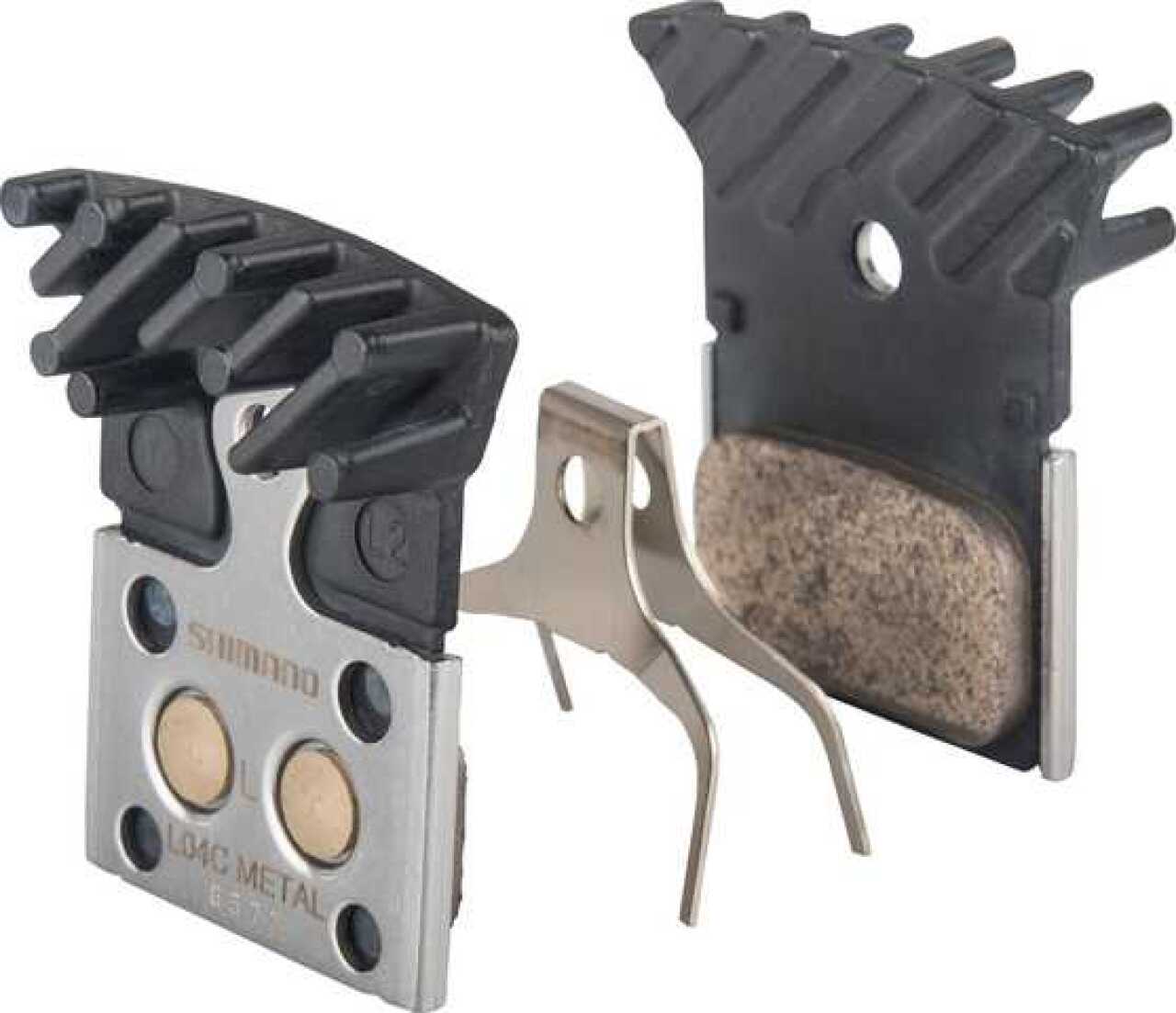 Тормозные колодки Shimano L04C Metall Pads, состав металл, с радиатором охлаждения, с пружинками и шплинтом. Для дисковых тормозов Shimano BR-RS805, BR-RS505.