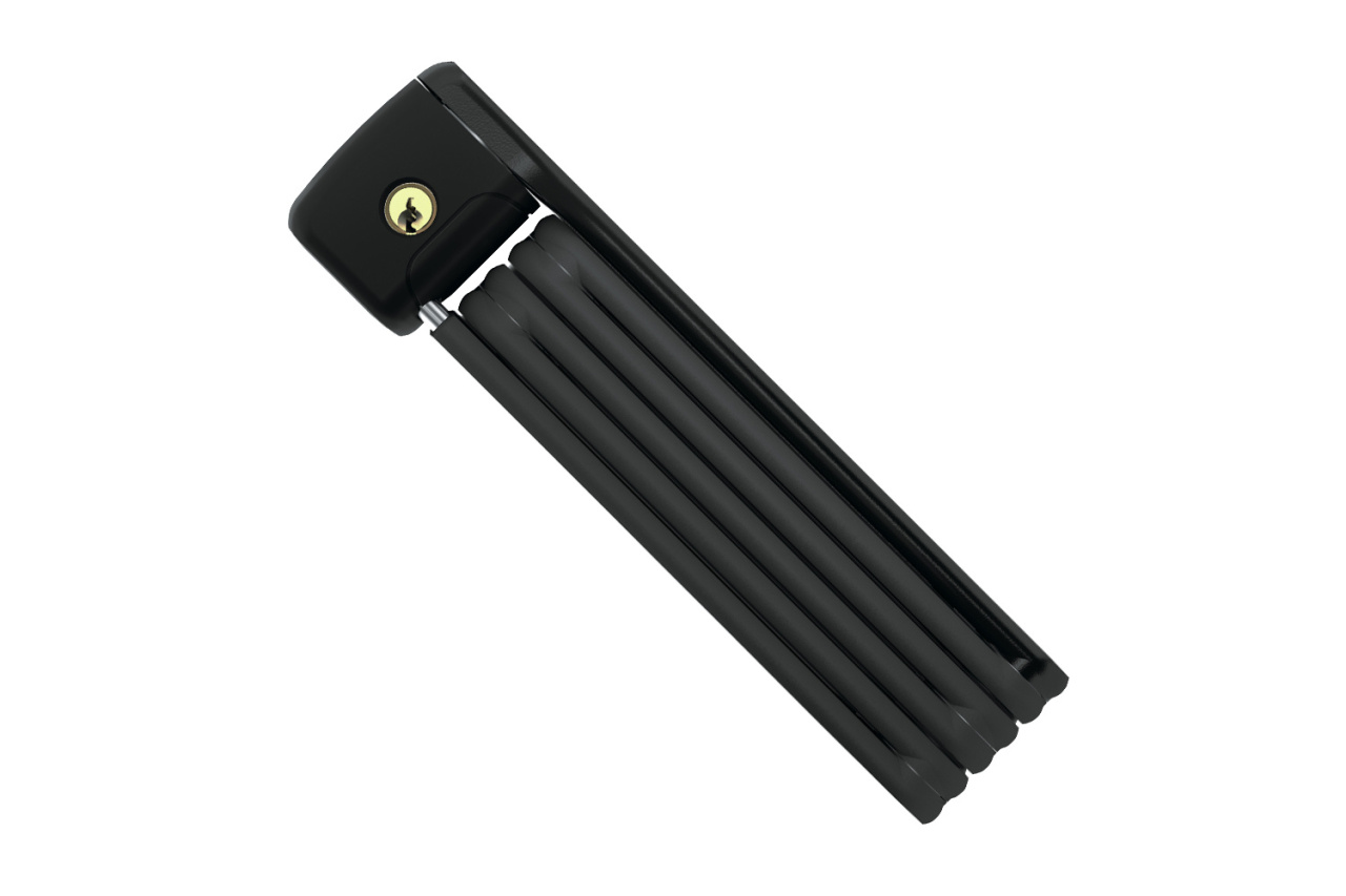 Велозамок Abus Bordo Lite 6055/85 - высокопрочный складной противоугонный замок. 5 пластин из нержавеющей стали в мягкой оболочке соединены между собой специальными заклепками и оснащены защищенным замком с ключом. Ключей в комплекте 2 штуки. Вес конструкции - 500 грамм, что незначительно при получаемом уровне надежности. Данный аксессуар обладает уровнем защиты 7 (по шкале 1 - 15), являясь при этом чуть ли не самым легким. В сложенном виде замок образует прямоугольник, его легко положить с собой в карман, рюкзак или велосумку. В рабочем состоянии длина окружности 850 мм.