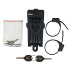 Велозамок 4Bike T602 - высокопрочный складной противоугонный замок. 8 пластин из нержавеющей стали в пластиковой оболочке соединены между собой и оснащены защищенным замком с ключом. Толстые стальные пластины обеспечивают максимальную защиту от угона, их невозможно перекусить кусачками.