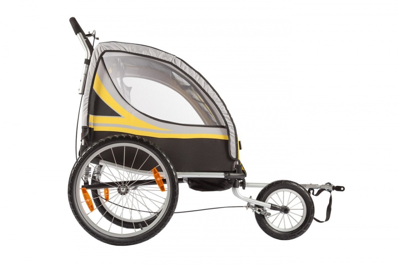 Велоприцеп Elterco VIC-1302 (BTA 19) отлично подойдет для родителей, которые любят кататься на двухколесном транспортном средстве, но при этом не желают расставаться со своим чадом. Главным отличием прицепа является наличие собственных амортизаторов, делающих поездку комфортной и беззаботной. Специальная конструкция со съемной ручкой и наличие дополнительного переднего колеса позволят использовать его, как обычную коляску.