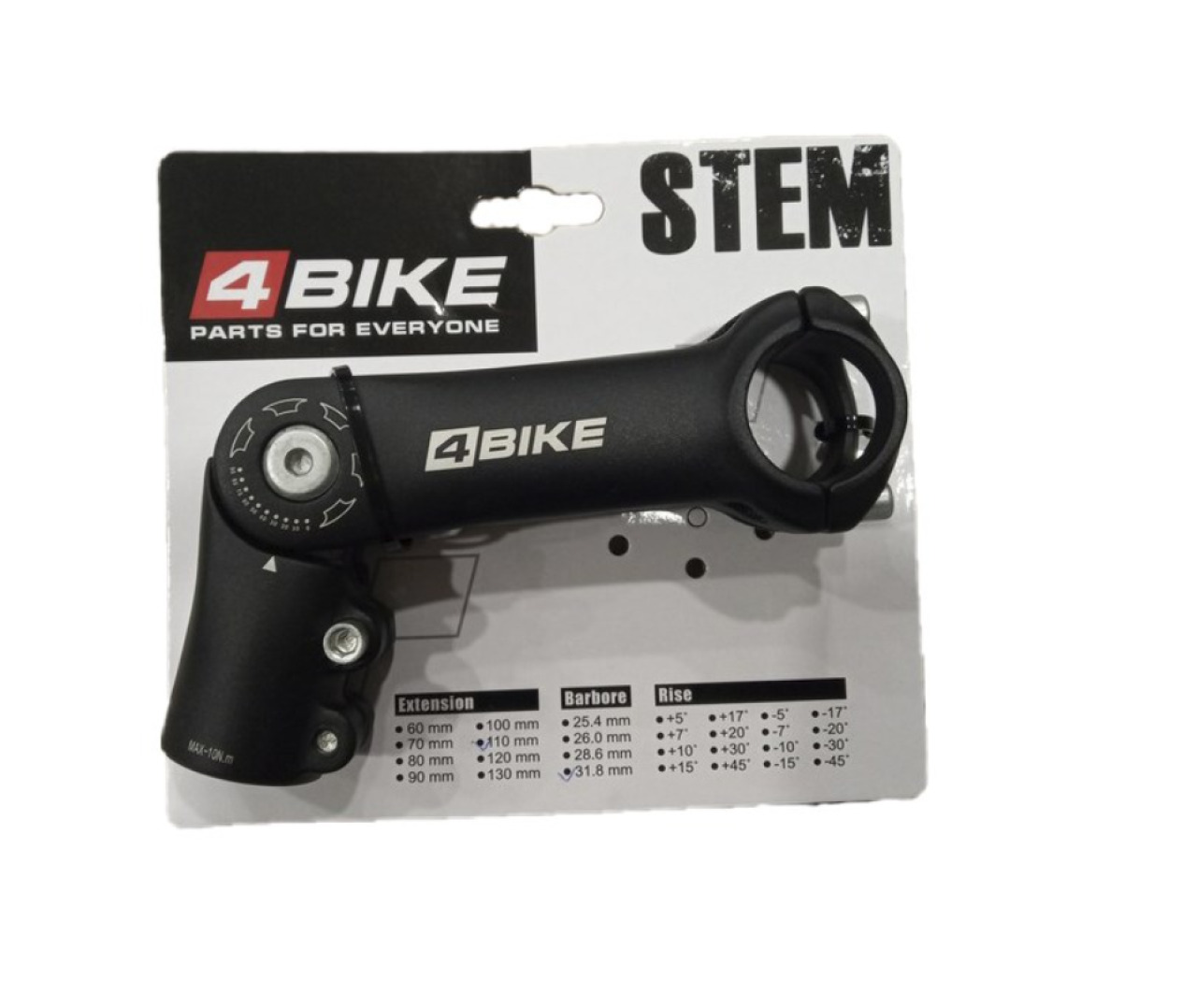 Вынос 4Bike TDS-C269 - высококачественное исполнение с широким функционалом. Найдет оптимальное применение к городским, прогулочным и комфортным велосипедам. Корпус из кованного алюминия, болты из прочной стали. Рассчитан на рулевые штоки 1 1/8" и для рулей с диаметром 31,8 мм. Шток прижимается двумя болтами, руль -четырьмя. Длина выноса по точкам крепления 110 мм, подъем регулируется в диапазоне от 0 до 90 градусов, ко всему, расположение точки крепления дополнительно приподнято относительно шарнира регулировки, что придает значительный комфорт посадке.