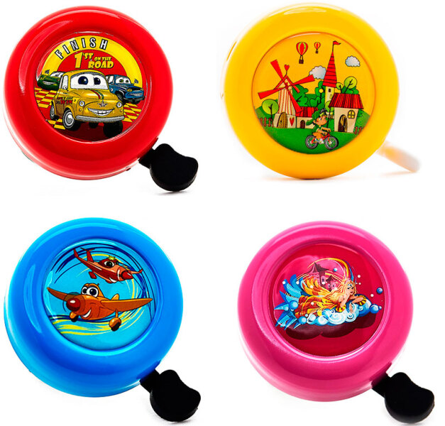Небольшие звоночки для детских велосипедов в ассортименте! Vinca Sport YL 0351 предлагает на выбор 4 разных расцветки: с тачками, самолётами, принцессой или городом. Любой ребёнок сможет выбрать именно тот, который ему нравится!