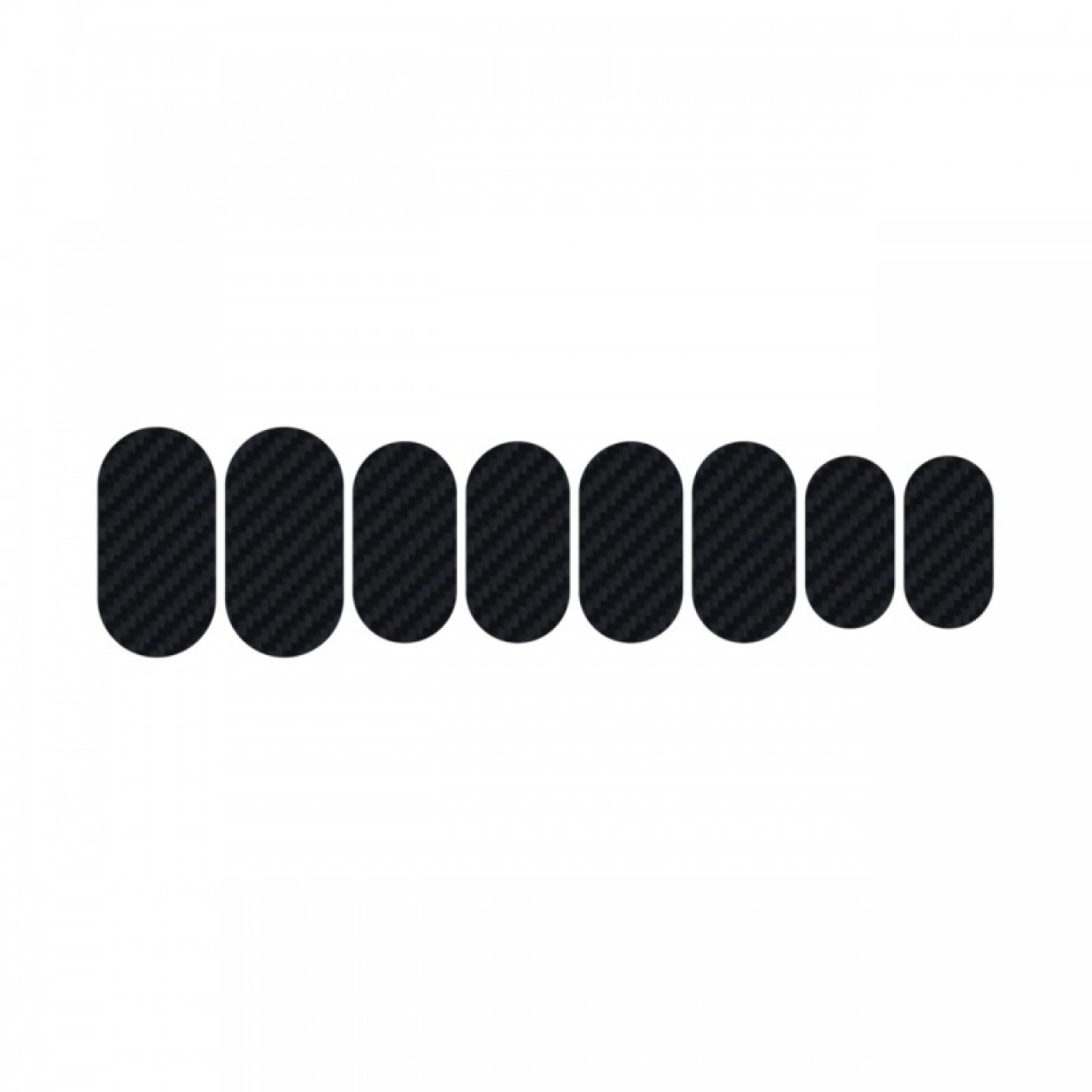 Заплатки имеют тактильно приятный материал из искусственной кожи на основе полиуретана, стилизованный под карбоновое волокно, что будет особенно актуально для карбоновых рам черного цвета.