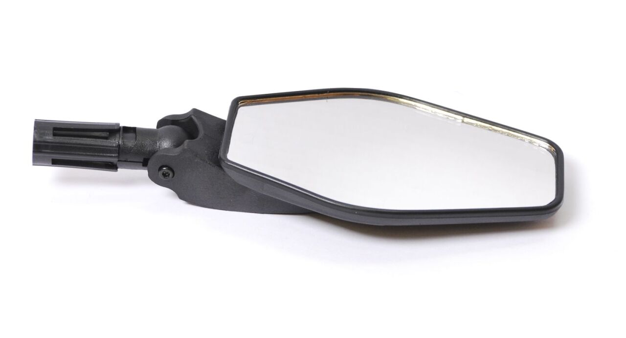Зеркало заднего вида от компании USports. Корпус зеркала, основной шарнир и фиксирующая сердцевина выполнены из пластика. Крепится с торцевой части внутрь руля, взамен баренды. Фиксирующий элемент располагает к установке как на алюминиевые, так и на стальные рули с разной толщиной стенки. Допускает установку на прямые и изогнутые, комфортные рули. Основной шарнир позволит с легкостью отрегулировать положение в трех плоскостях. Комплект состоит из 1 зеркала, которое в свою очередь допускает установку как справа, так и слева. Зеркало станет хорошим дополнением для повышения Вашего комфорта и безопасности движения в одном потоке с автомобилями.