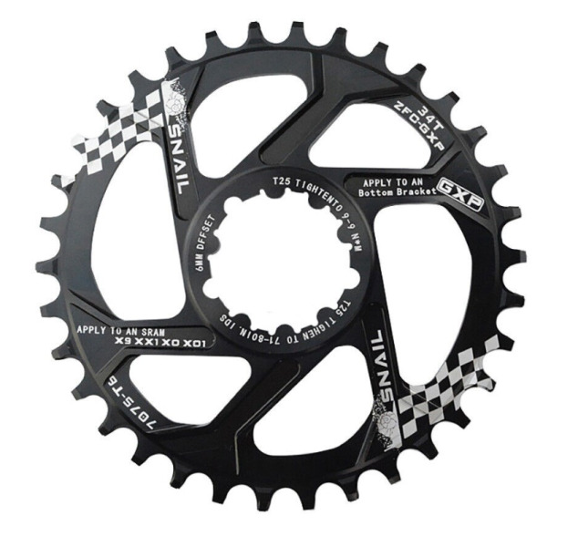 Ведущая звезда Snail для любительского и профессионального использования на системах Sram стандарта GXP. Обладает диапазоном в 34 зуба, подходит для установки на шатуны с креплением по стандарту Direct Mount. Выполнена звезда из высокопрочного алюминия 7075-Т6 с ЧПУ обработкой, что позволяет быть предельно легкой и крайне ресурсной. Переменная толщина зубьев (Narrow Wide) позволит использовать звезду без успокоителей, цепь надежно удерживается и не спадает. Рассчитана для агрессивных и скоростных MTB дисциплин и внедорожных велосипедов. Совместима с трансмиссией и многими цепями на 10-12 скоростей, также подойдет на некоторые 9 скоростные трансмиссии. Оффсет звезды 3 мм.